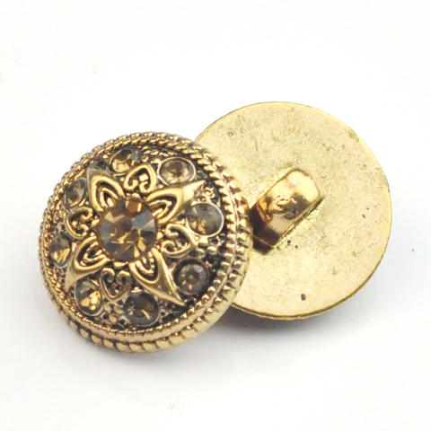 WBKC-184 안티 황동 색상 라인 석 라운드 합금 생크 도금 버튼 장식